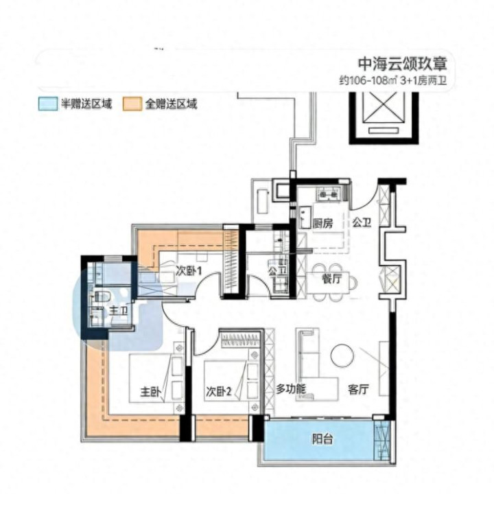 其中,建面约106-108㎡3+1房两卫,经典竖厅布局,多功能房可灵活改造为书房、儿童房、茶室或健身区等。